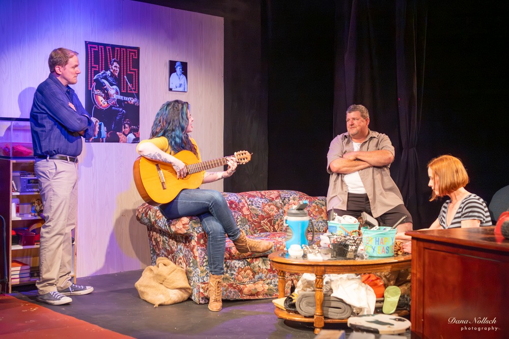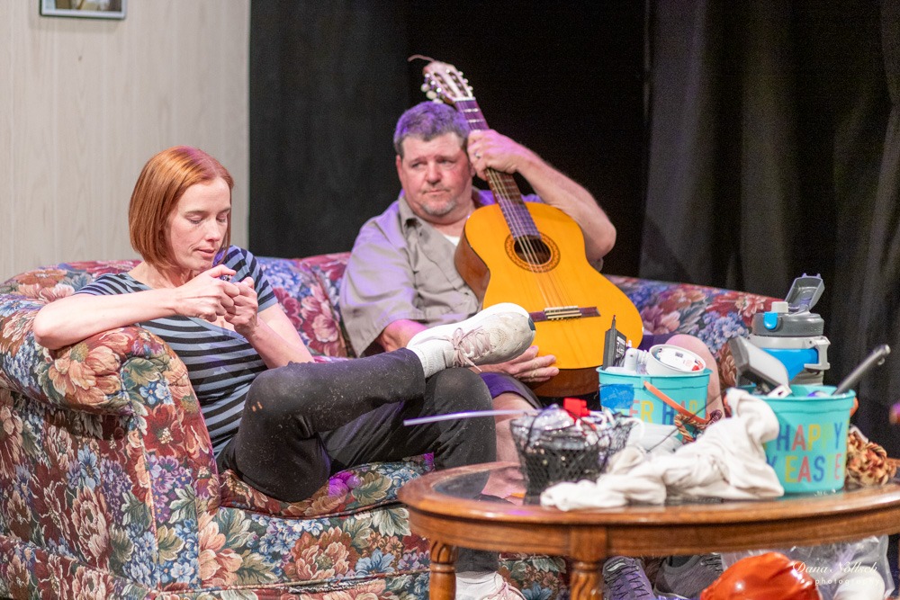 Theo’s parents, Junior, played by Gary Cremeans, and Rose, played by Annikki Larsson, have found life quite difficult of late and seek solace in the pipe. As the four of them come together, they share moments of laughter, but mainly they share moments of deep reflection on the past and worry about the future.